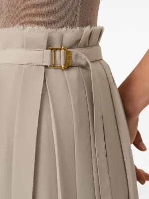 Runway AMI Paris pleated skirt Imported Highlights grey slide-buckle fastening high-waisted frayed edge long length Composition Polyester 100% Washing instructions Dry Clean Only Product IDs FARFETCH ID: 27187062 Brand style ID: E25FSK353PL0027