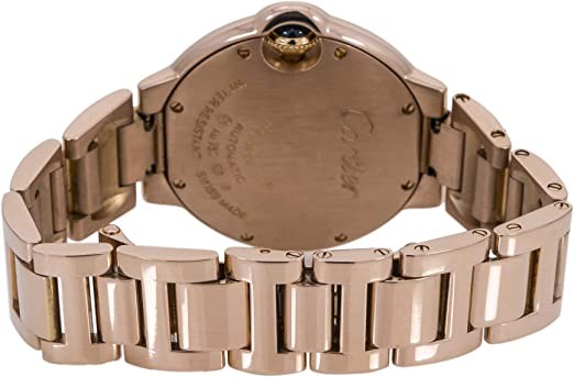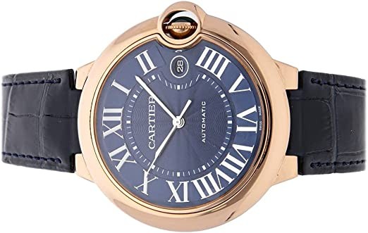 Blue dial. 18kt rose gold case with a blue (alligator) leather band. Automatic movement. 30 meters / 100 feet water resistance. Fixed bezel. Fold Over clasp. Case size 42 mm x 13 mm. Cartier wgbb0036 Ballon Bleu Watch.