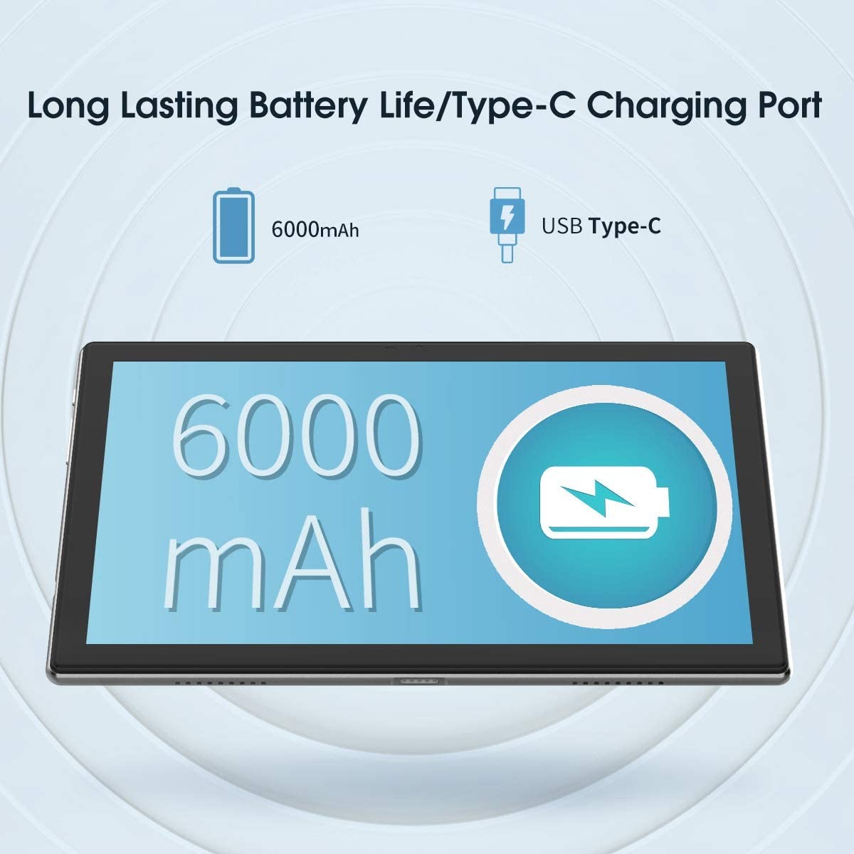 • 【Long Battery Life】 Powered by a 6000mAh battery, the 10” tablet can stand by for up to 15 days and play video for up to 5 hours. Easily charge via the USB Type-C port and rest assured the battery will last. Video chat or snap selfies on the front camera, or document your day on the rear camera and share to social media on the ultra-fast Wi-Fi.
