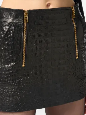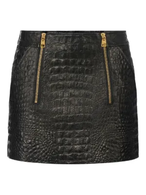 Elisabetta Franchi crocodile-effect zip-detail mini skirt Made in Italy Highlights black crocodile effect zip fastening gold-tone zip high waist Composition Leather 100% Washing instructions Read Manufacturer Guidelines Product IDs FARFETCH ID: 30694996 Brand style ID: GP08Z58E2