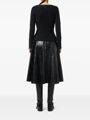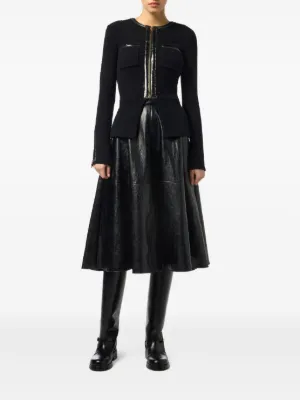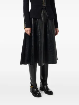 Final Sale Elisabetta Franchi leather-effect belted midi skirt Made in Italy Highlights black leather gold-tone buckle A-line shape seamed detailing Composition Viscose 69%, Polyester 31% Washing instructions Read Manufacturer Guidelines Product IDs FARFETCH ID: 30699158 Brand style ID: GO13656E2