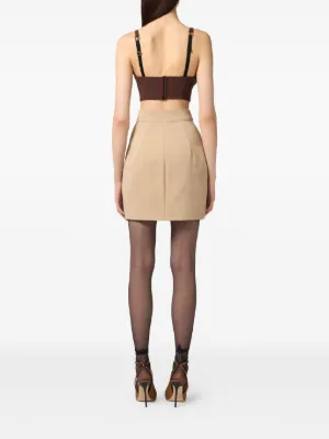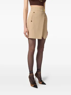 Elisabetta Franchi wrap-front utility skirt Made in Italy Highlights beige wrap front design gold-tone button details side pockets high-waisted silhouette Composition Cashmere 62%, Polyamide 38% Washing instructions Read Manufacturer Guidelines Product IDs FARFETCH ID: 30697015 Brand style ID: GO12656E2