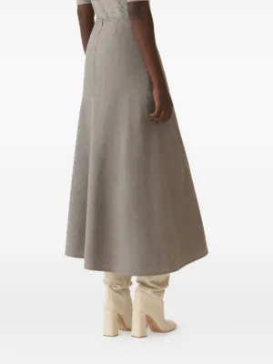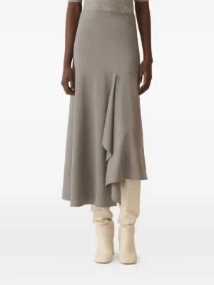 Fabiana Filippi asymmetrical ruffled skirt Made in Italy Highlights grey ruffled asymmetric hem knee-length Composition Wool 75%, Polyamide 23%, Elastane 2% Lining: Polyester 100% Washing instructions Read Manufacturer Guidelines Product IDs FARFETCH ID: 30907035 Brand style ID: GND215F414D6200000