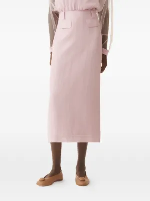 New Season Fabiana Filippi flap-pocket midi skirt Made in Italy Highlights pink straight hem rear slit belt loops Composition Lyocell 100% Washing instructions Read Manufacturer Guidelines Product IDs FARFETCH ID: 32870909 Brand style ID: GND266F399D9540000