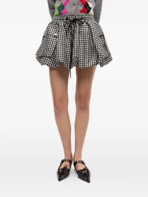 Final Sale GANNI checked bubble mini skirt Imported Highlights black elasticated drawstring waistband two side flap pockets thigh-length Composition Outer: Recycled Polyester 100% Lining: Cotton 100% Washing instructions Read Manufacturer Guidelines Product IDs FARFETCH ID: 29880193 Brand style ID: W0465