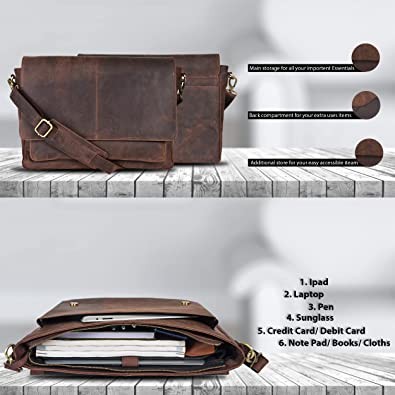 Genuine Vintage Leather Messenger Bag - Handmade Document Briefcase Adjustable Shoulder Bag