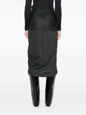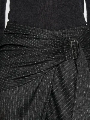 ISABEL MARANT Reilly skirt Imported Highlights grey pinstripe pattern asymmetric design belted detail zip fastening Composition Virgin Wool 86%, Cotton 14% Washing instructions Read Manufacturer Guidelines Wearing The model is 5 ft 9 in wearing size 36 Product IDs FARFETCH ID: 31778251 Brand style ID: JU0417FAC4J12I