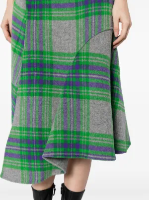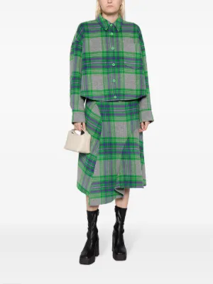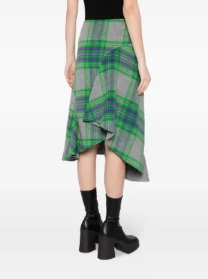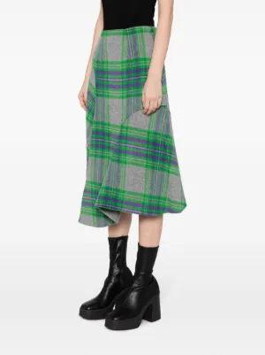 JNBY plaid-check pattern asymmetric skirt Imported Highlights grass green/multicolour wool blend plaid check pattern panelled design asymmetric design high-waisted concealed side zip fastening mid-length asymmetric hem Composition Body: Wool 65%, Polyamide 30%, Viscose 5% Washing instructions Dry Clean Only Wearing The model is 5 ft 9 in wearing size S Product IDs FARFETCH ID: 22024675 Brand style ID: 5N0D15370