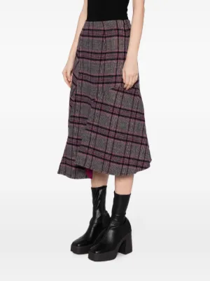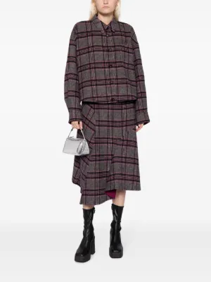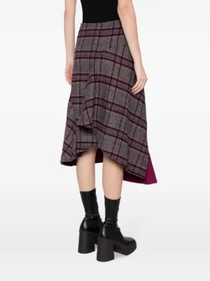 JNBY plaid-pattern asymmetric skirt Imported Highlights dark grey/pink wool blend plaid check pattern asymmetric design concealed side zip fastening high-waisted asymmetric hem mid-length Composition Wool 69%, Polyamide 31% Washing instructions Dry Clean Only Wearing The model is 5 ft 9 in wearing size S Product IDs FARFETCH ID: 22024679 Brand style ID: 5N0D15370