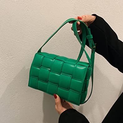 Ling Chuang Woven Crossbody Handbag Purse for Women, Leather Small Handbags Clutch Square Bag Weave Shoulder Bags