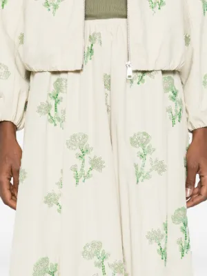 New Season Maje floral A-line midi skirt Imported Highlights beige floral pattern A-line shape elasticated waistband gathered detail Composition Outer: Polyester 72%, Cotton 28% Lining: Cotton 100% Washing instructions Hand Wash Wearing The model is 5 ft 10 in. Product IDs FARFETCH ID: 32633781 Brand style ID: MFPJU01615