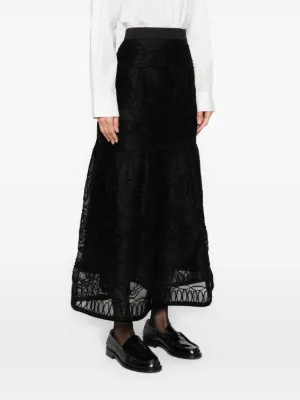 New Season Maje floral midi skirt Imported Highlights black floral design elasticated waistband Composition Outer: Polyester 100% Lining: Polyester 93%, Lycra 7% Washing instructions Machine Wash Wearing The model is 5 ft 10 in. Product IDs FARFETCH ID: 32634238 Brand style ID: MFPJU01576