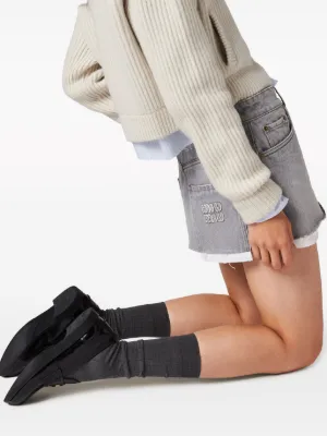 Cut in Italy to a relaxed fit, this skirt from Miu Miu is made from rigid cotton denim and defined by its exposed lining that adds a streetwear-inspired look to its thigh length. A tonal logo patch adorns its rear pocket for a recognisable look.