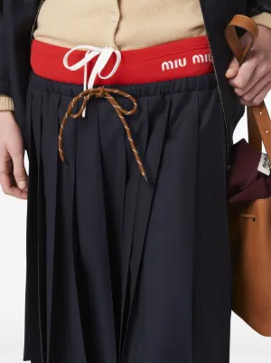 Miu Miu pleated midi skirt Highlights midnight blue fully pleated elasticated drawstring waistband straight hem below-knee length Composition Fabric 100% Washing instructions Read Manufacturer Guidelines Product IDs FARFETCH ID: 23705796 Brand style ID: MG2237SOOO11AD