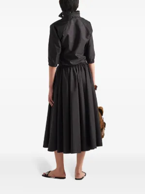 Prada triangle-logo zipped midi skirt Highlights black triangle logo elasticated drawstring waistband front zip fastening two side zip-fastening pockets mid length straight hem unlined Composition Recycled Polyamide 100% Washing instructions Read Manufacturer Guidelines Product IDs FARFETCH ID: 23826113 Brand style ID: 21X951SOOO1WQ9