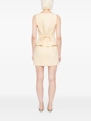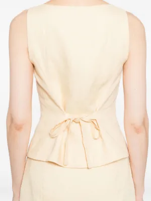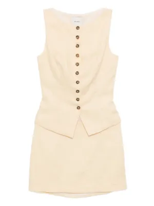 Reformation Lina linen two piece Made in United States Highlights Top light yellow front button fastening rear tie fastening boat neck sleeveless Bottom light yellow side zip fastening straight hem Composition Linen/Flax 100% Washing instructions Machine Wash Wearing The model is 5 ft 10 in wearing size 4 Product IDs FARFETCH ID: 31091373 Brand style ID: 1317952PMN