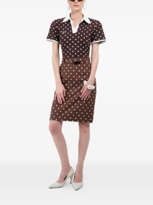 New Season Rowen Rose polka-dots belted midi skirt Made in Italy Highlights brown polka dot print belt buckle midi length rear zip fastening Composition Outer: Viscose 97%, Elastane 3% Lining: Viscose 100% Washing instructions Specialist Cleaning Product IDs FARFETCH ID: 34127265 Brand style ID: RR4636MBROWN