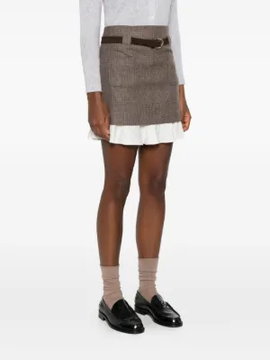 SANDRO check-pattern layered mini skirt Imported Highlights brown check pattern belted waist front patch pockets layered ruffle hem Composition Outer: CALFSKIN 90%, Virgin Wool 60%, Polyester 38%, zamac 10%, Elastane 2% Lining: Polyester 100% Washing instructions Read Manufacturer Guidelines Wearing The model is 5 ft 10 in wearing size 42 Product IDs FARFETCH ID: 29914265 Brand style ID: SFPJU01548