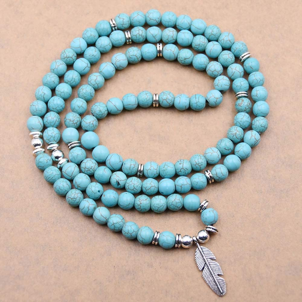 • ❁ 100% HANDMADE ITEMS: A gorgeous japa mala 108 beads wrist wrap bracelet /necklace is processed with natural healing stone beads and carefully manned with a leaf charm and accessories.