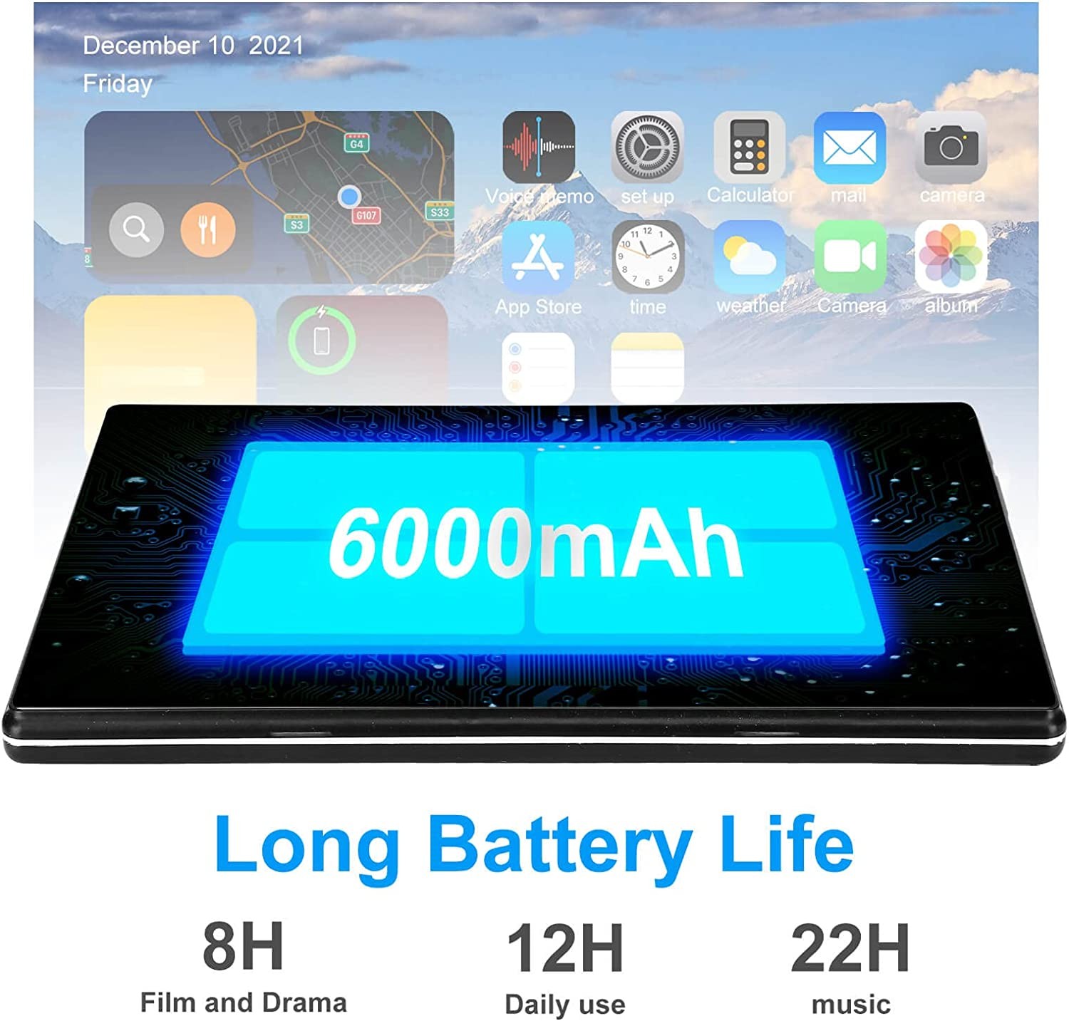 • 【Long Lasting Battery】10" Tablet PC Equipped with 6000mAh rechargeable battery for over 8 hours of mixed use. Enjoy reading, listening to music, watching movies, playing games, video calling or surfing the internet even when you travel.