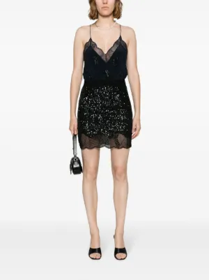 Zadig&Voltaire Justicia sequin-embellished lace-trim skirt Imported Highlights black sequin design lace trim elasticated waistband scallop hem partial lining Composition Polyester 100% Washing instructions Dry Clean Only Wearing The model is 5 ft 10 in wearing size 36 Product IDs FARFETCH ID: 22018118 Brand style ID: WWSK00384